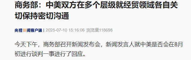 今天下午,商務部召開新聞發(fā)布會,新聞發(fā)言人就中美是否會在8月初進行談判一事進行了回應。
